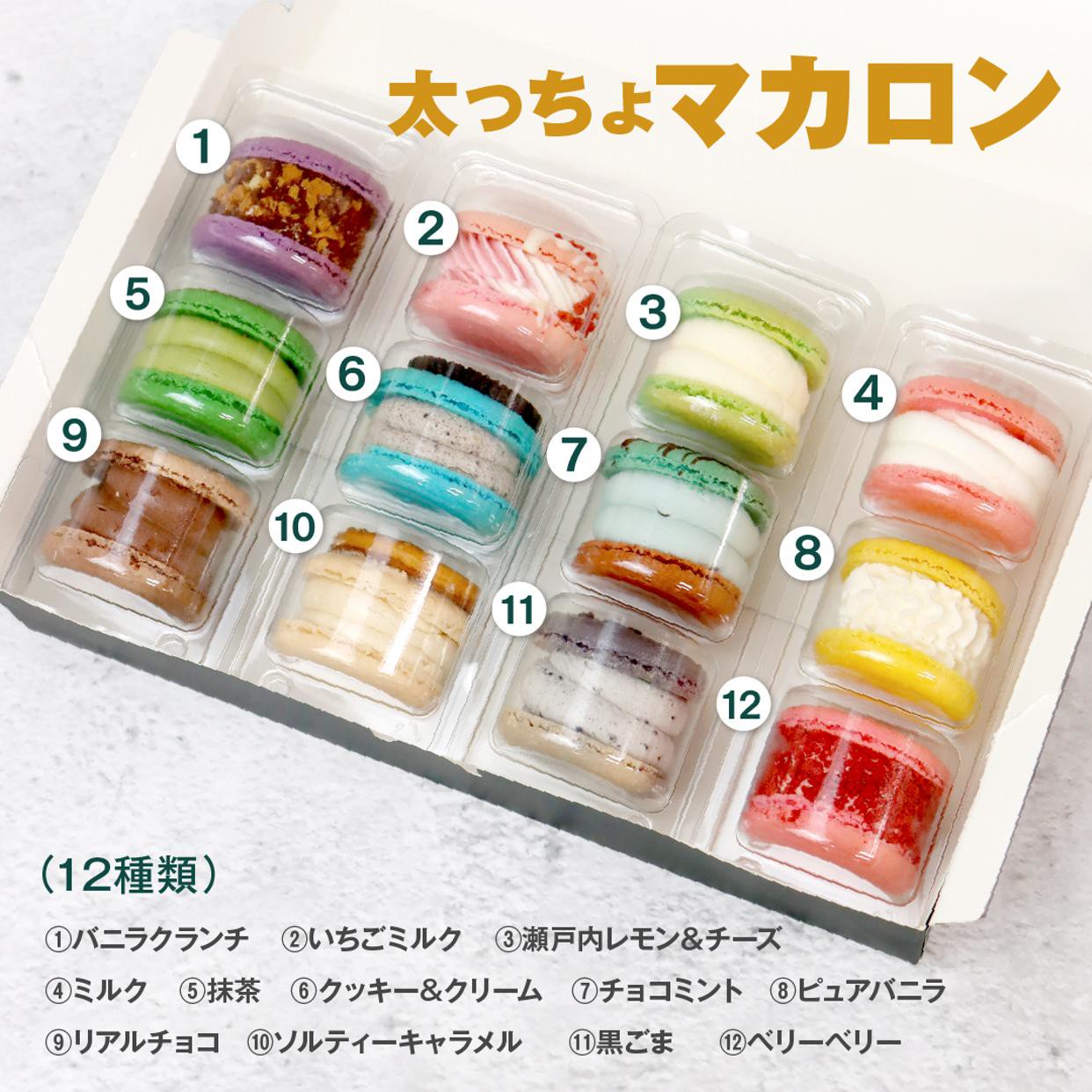 「太っちょマカロン」という意味で、一般的な マカロンに比べてもっとボリューミーなマカロンです。 たっぷりのバタークリームをサンドし、 味も見た目も豪華なスイーツです。
