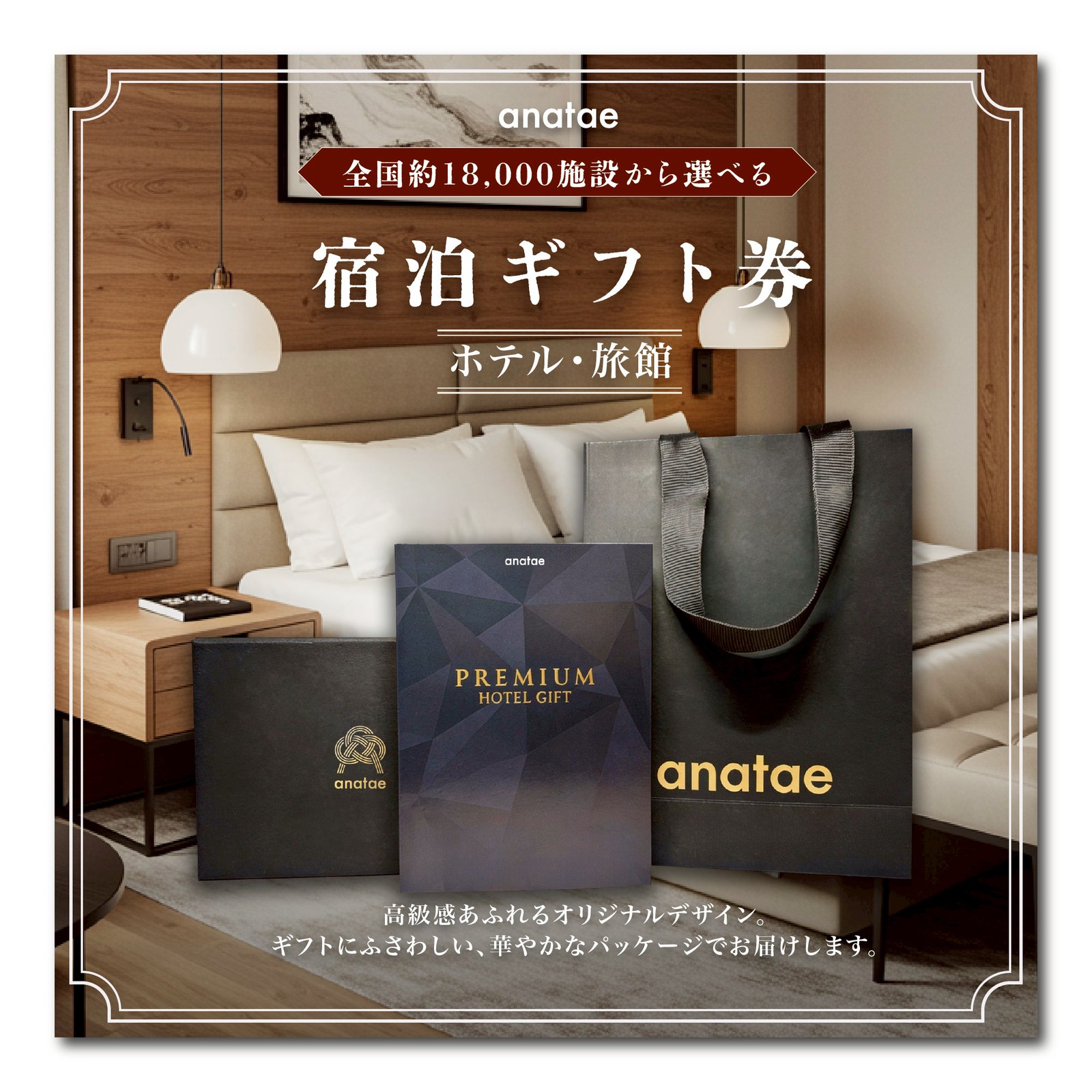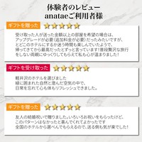 anataeの『宿泊ギフトカード(ホテル・旅館)』なら、受け取った方が全国約18,000軒のホテルから自由に宿泊先を選べます。温泉旅館での癒しのひとときや、ラグジュアリーホテルでの非日常体験、贅沢な時間が過ごせるリゾートホテルなど、さまざまなスタイルの施設をラインナップ。”選ぶ楽しみ”と”心に残る想い出”を、大切なあの人へのギフトにぜひ。