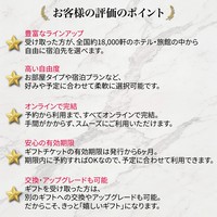 日本全国18,000以上のホテルから自由に選べるホテルギフトカード 予算に合わせて選べる『ホテルギフトカード』は、一万円から二十万円まで8種類をご用意。どの金額でも、全国約18,000軒のホテルから自由に宿泊先をお選びいただけます。温泉旅館での癒しのひととき、シティホテルでの上質な滞在、リゾートホテルでの非日常体験など──大切な人に"心に残る旅"をプレゼントできます。