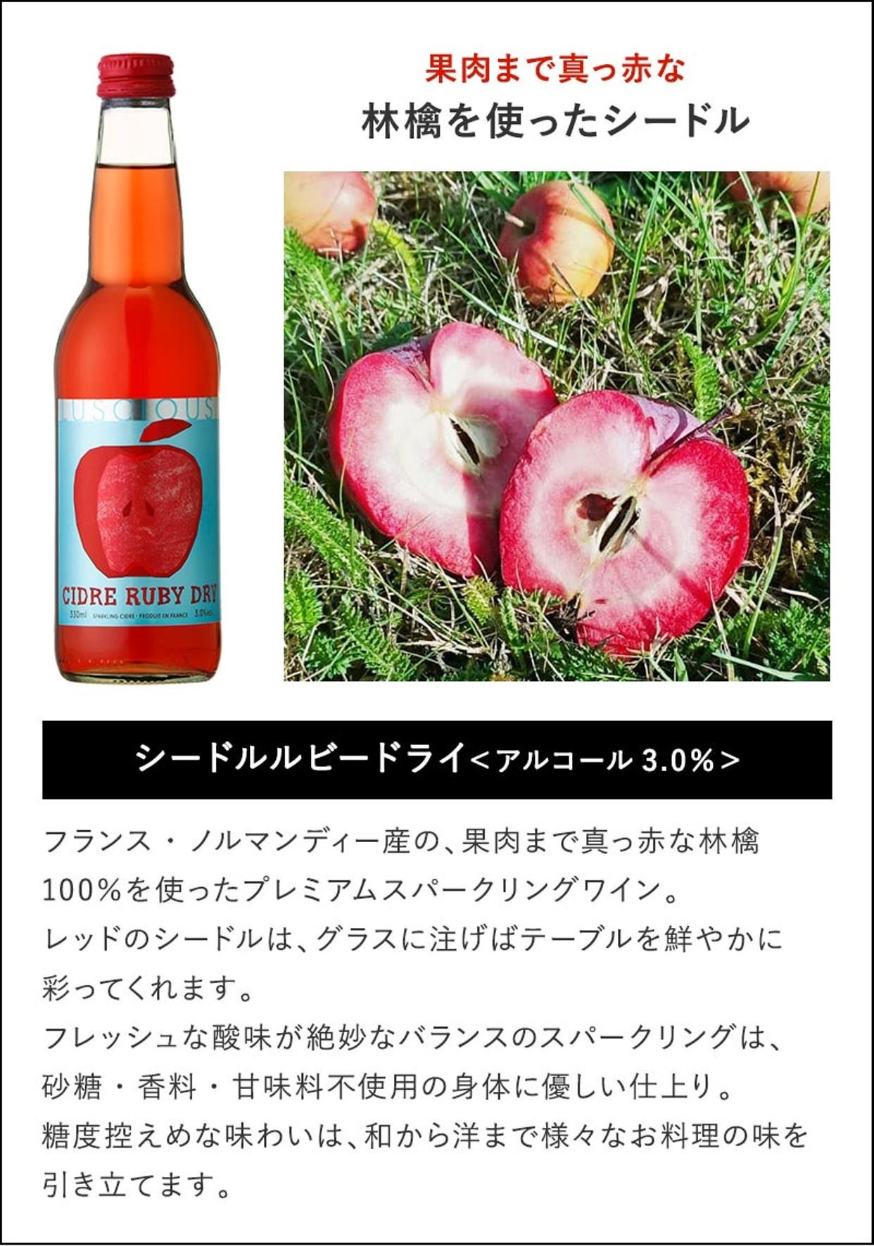 フランスノルマンディー産の果肉まで真っ赤な林檎100%のプレミアムスパークリング。