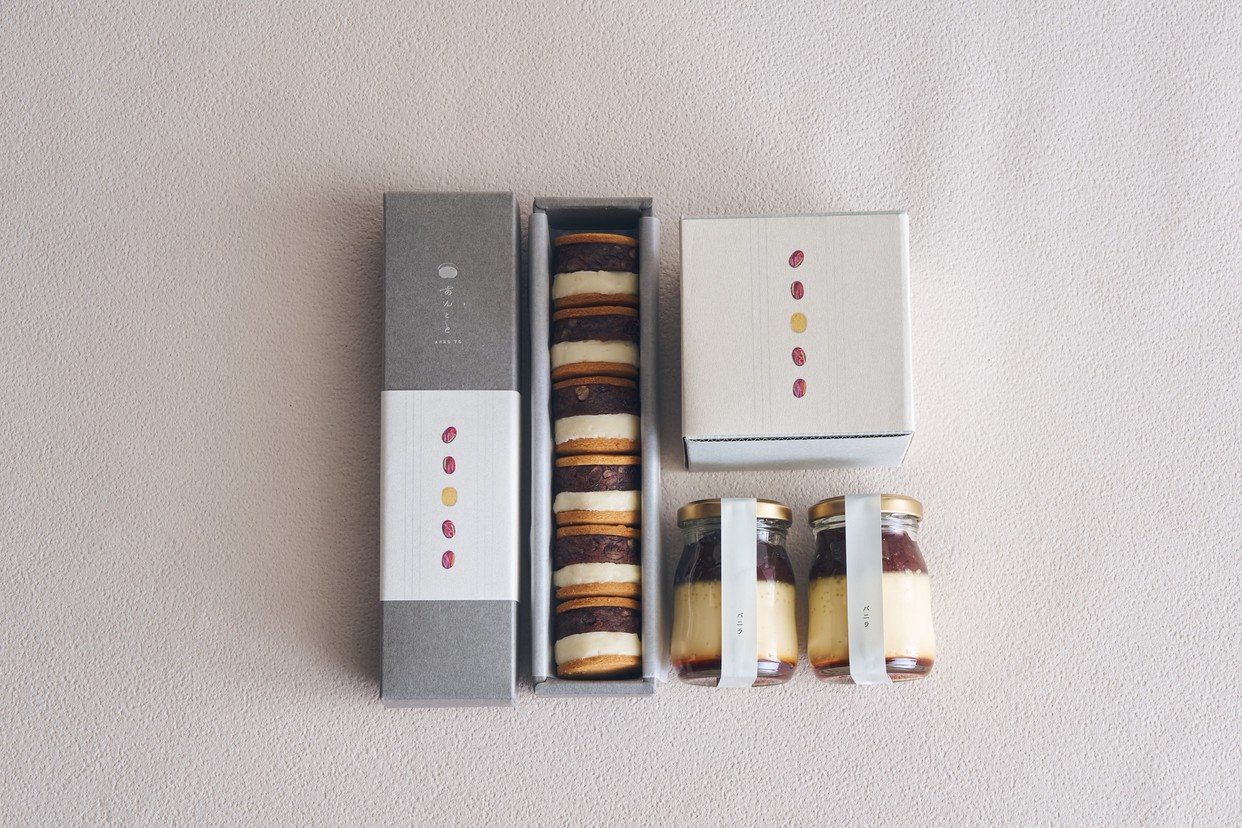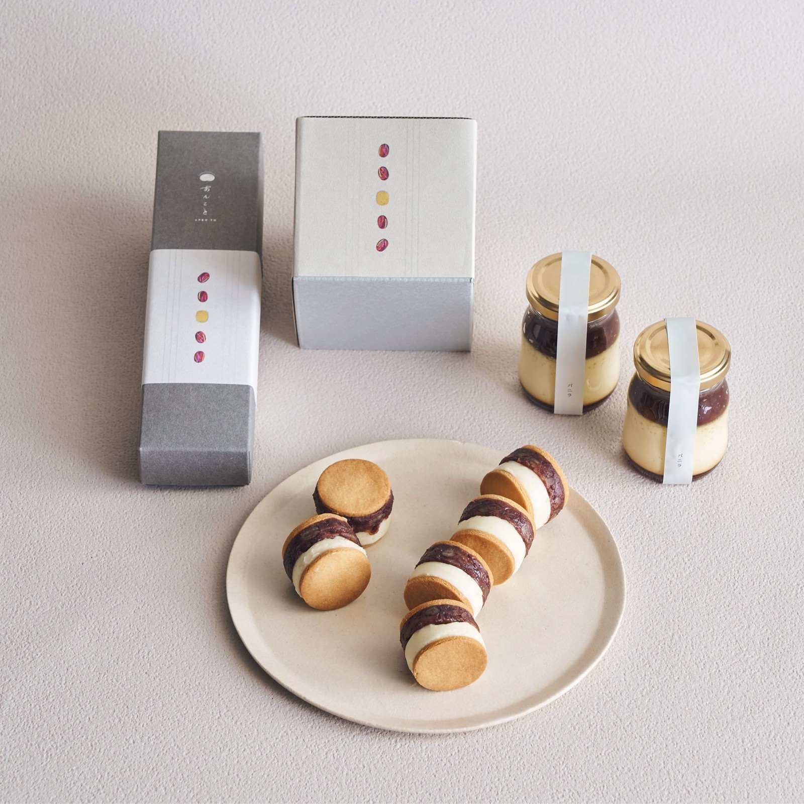 あんバターサンド6個入1箱とあんこプリン〈バニラ〉2個。