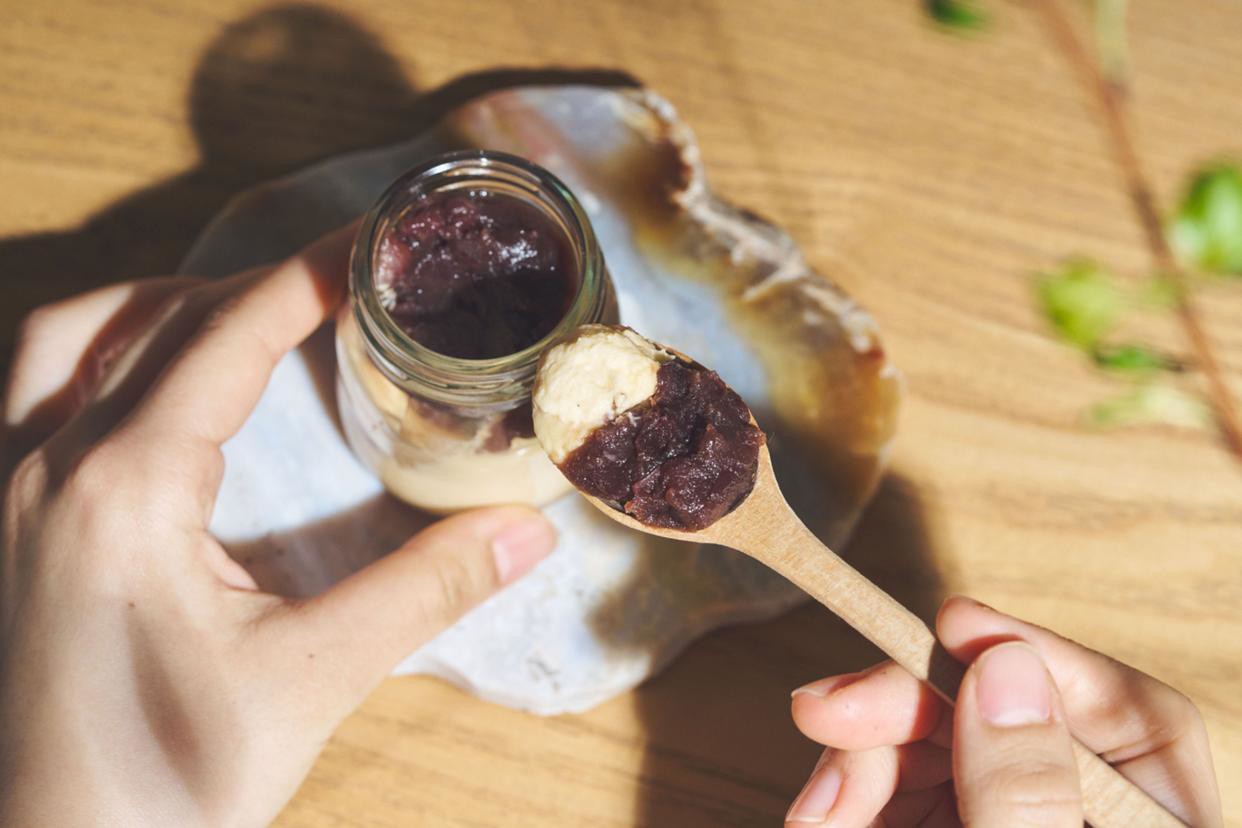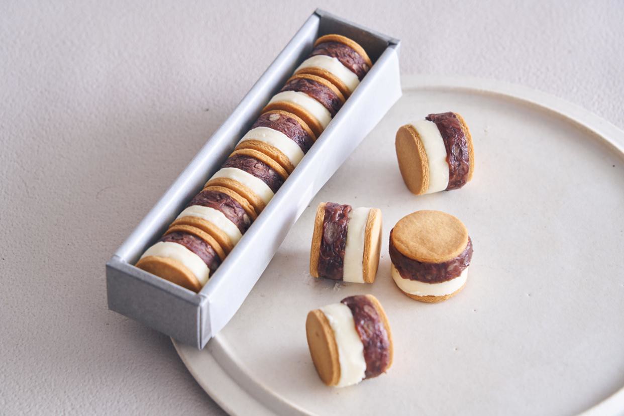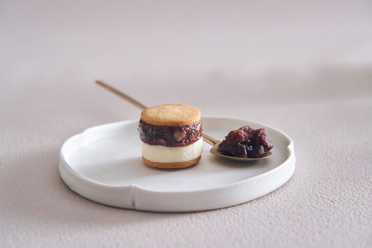 あんことの自家製「あんこ」と、コクのあるなめらかな豆乳バターを、さっくりとした米粉のビスケットで挟みました。