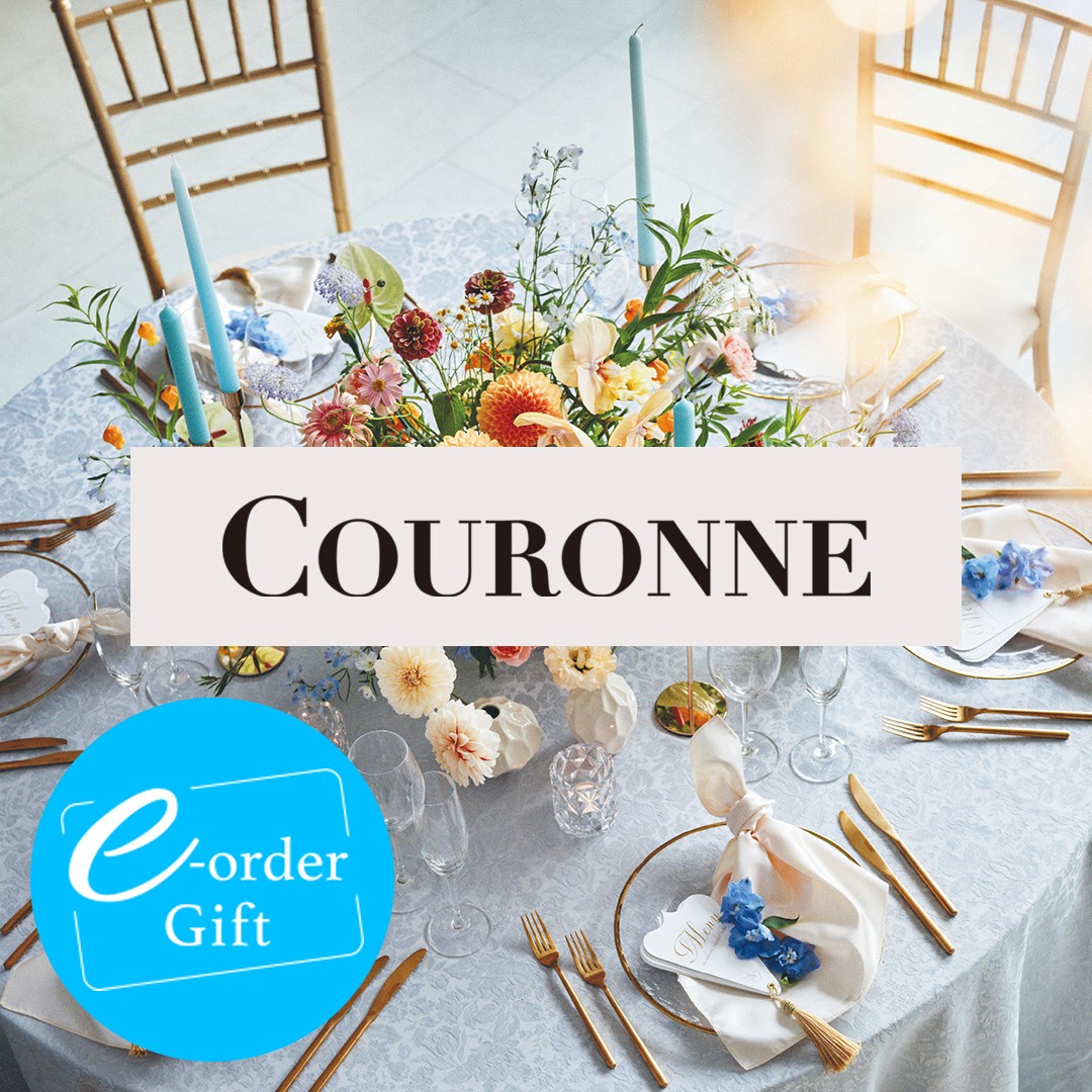 「王冠」を意味するカタログギフト「COURONNE」は、2人の感謝の気持ちを運ぶ、ウェディングにふさわしい華やかなカタログです。
