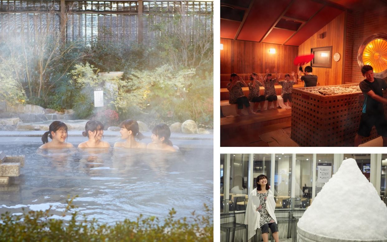 館内では、地下1,100mから湧き出る天然温泉をリゾート感たっぷりの露天風呂で楽しめるほか、ロウリュウエンターテイメントも楽しめる岩盤浴、本格的なアラカルトメニューがいただけるレストラン、話題の新作から人気の旧作まで2万冊のコミックが読めるコミックエリアなど、一日滞在してリフレッシュできる施設が揃っているほか、スタッフのホスピタリティの高さも人気の秘密です。
