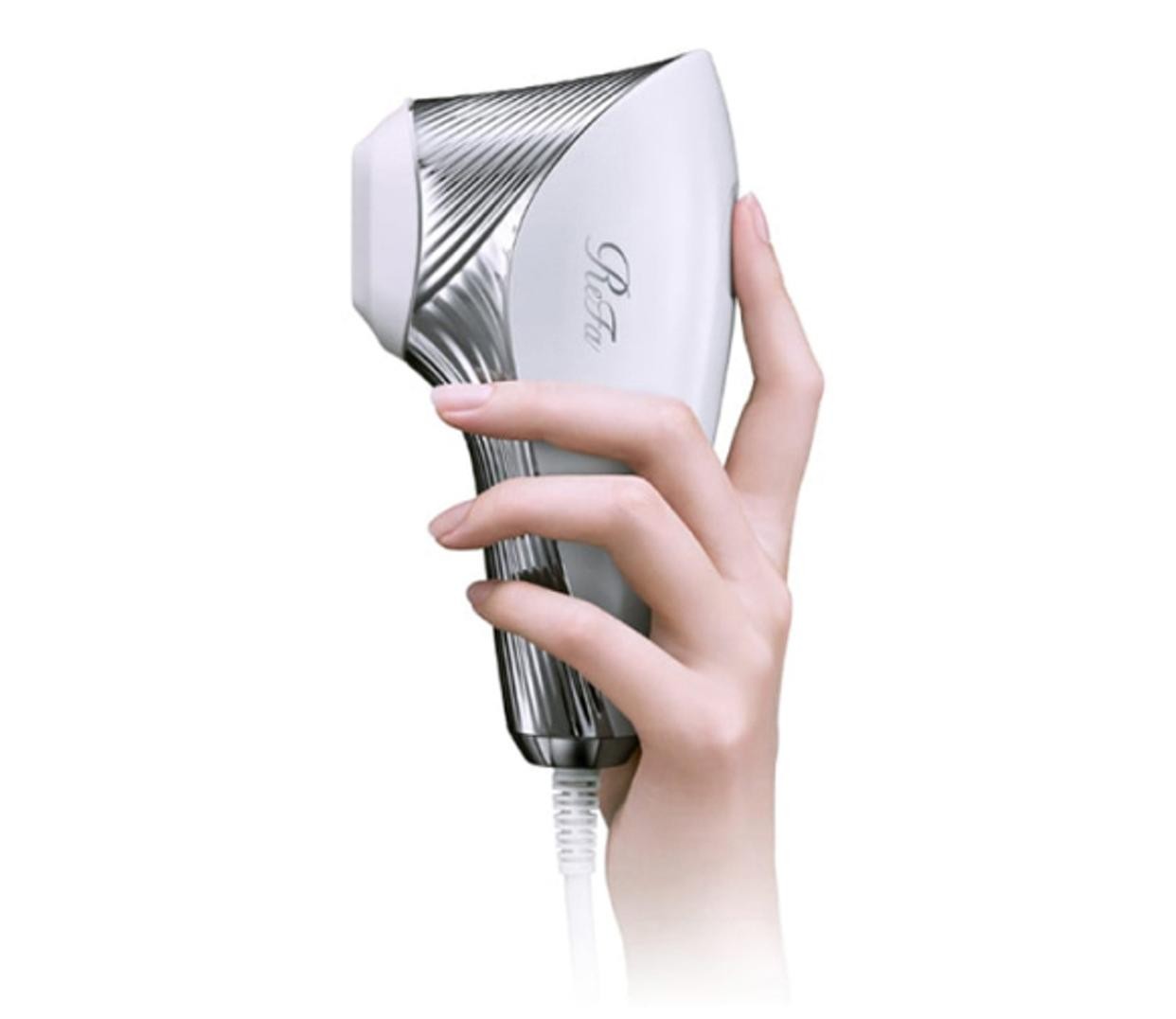 ハイパワーでありながらも、従来品よりも約25%※も軽量化し操作性がアップしたReFa EPI W。さまざまな部位に使用できるよう、サロン仕様のL型のハンドピースに。手にしっかり馴染み、今まで照射がしにくかった二の腕や太ももの裏、うなじなどもストレスなくケアできます。