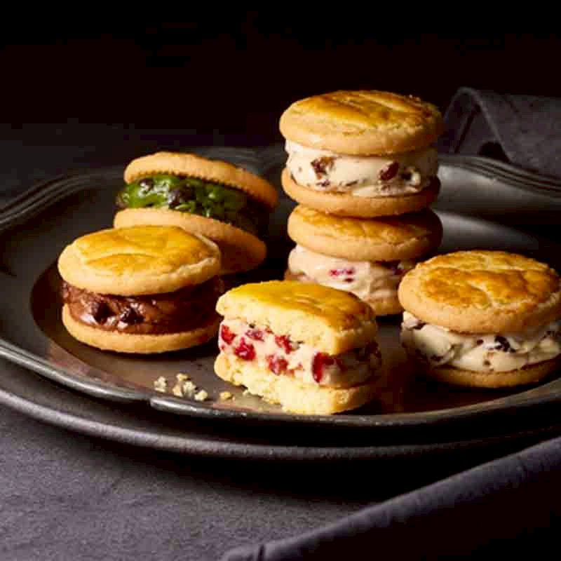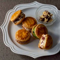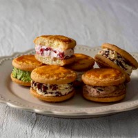 酸味のあるドライフルーツたちがほどよくマッチする、発酵バターを使用した濃厚なバタークリームを、ちょっぴり塩気のあるサクサクなクッキーでサンドしました。バタークリームの濃厚さ、ドライフルーツの量や大きさ、クッキーの食感や厚み、塩気など、パティシエのこだわりを詰め込んだ自慢のレシピで作るバターサンドです。