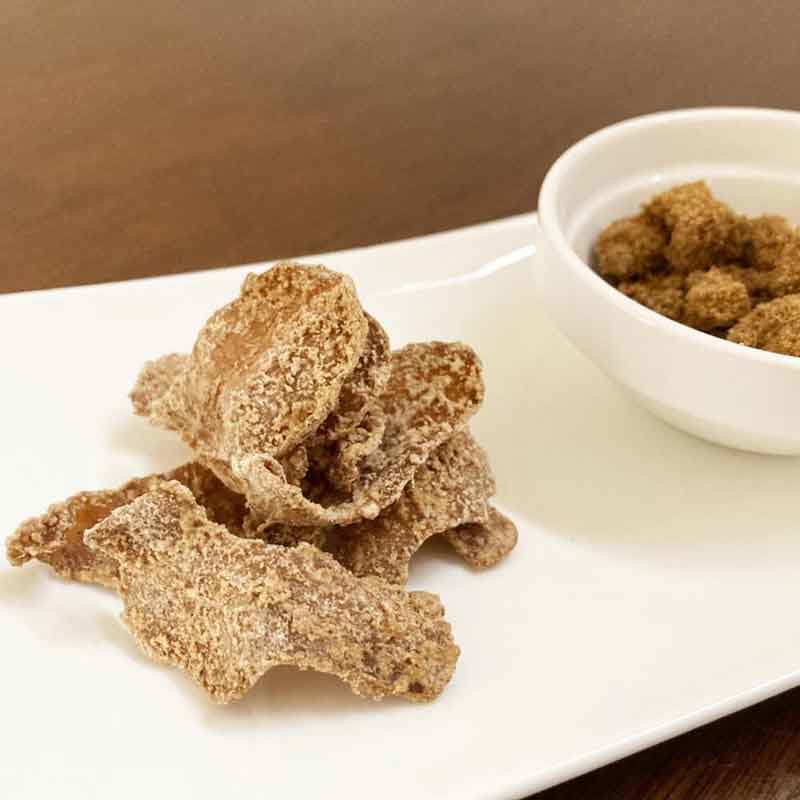 熊本県産生姜をスライスし、北海道のビート糖と沖縄多良間産の黒糖でゆっくり煮詰めて作った生姜の砂糖菓子です。