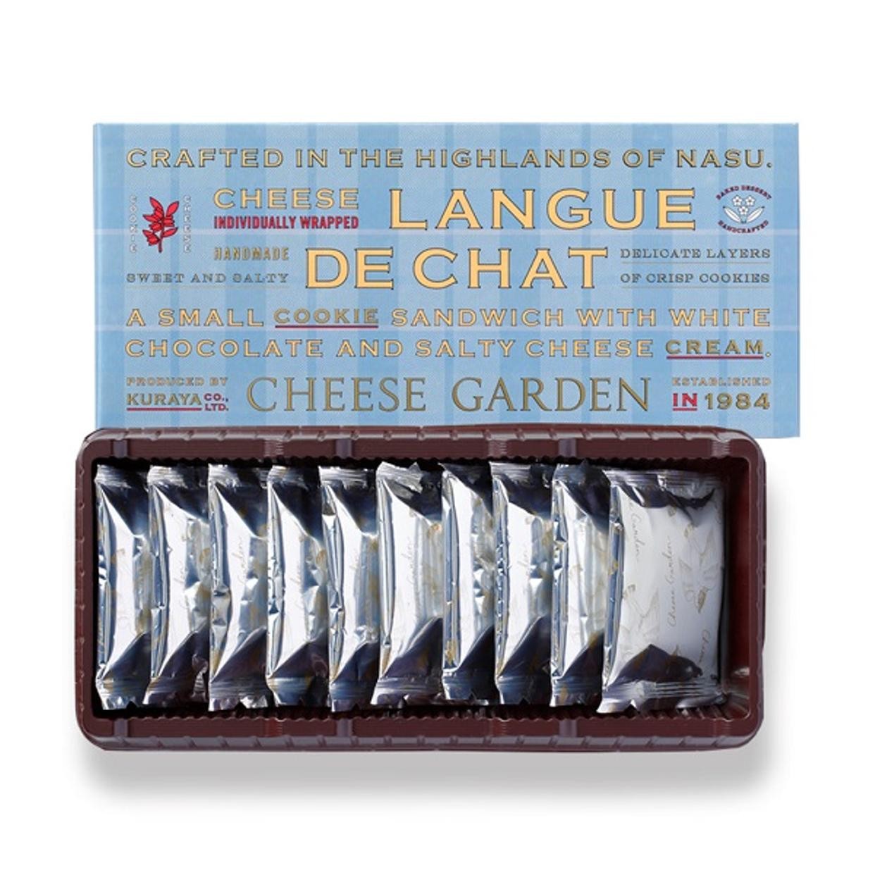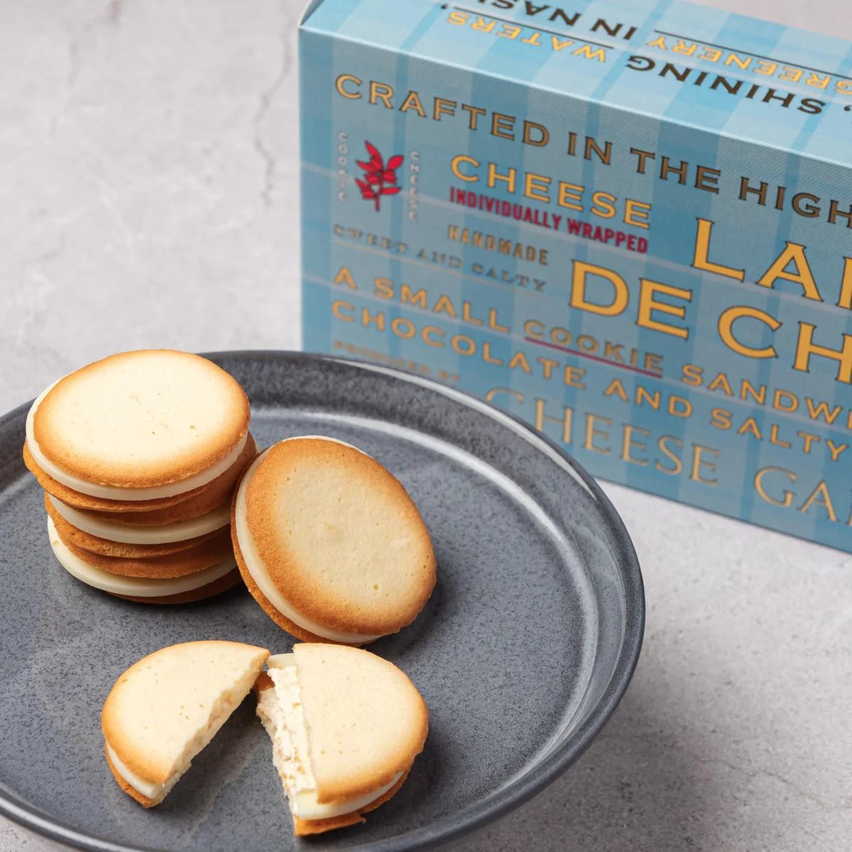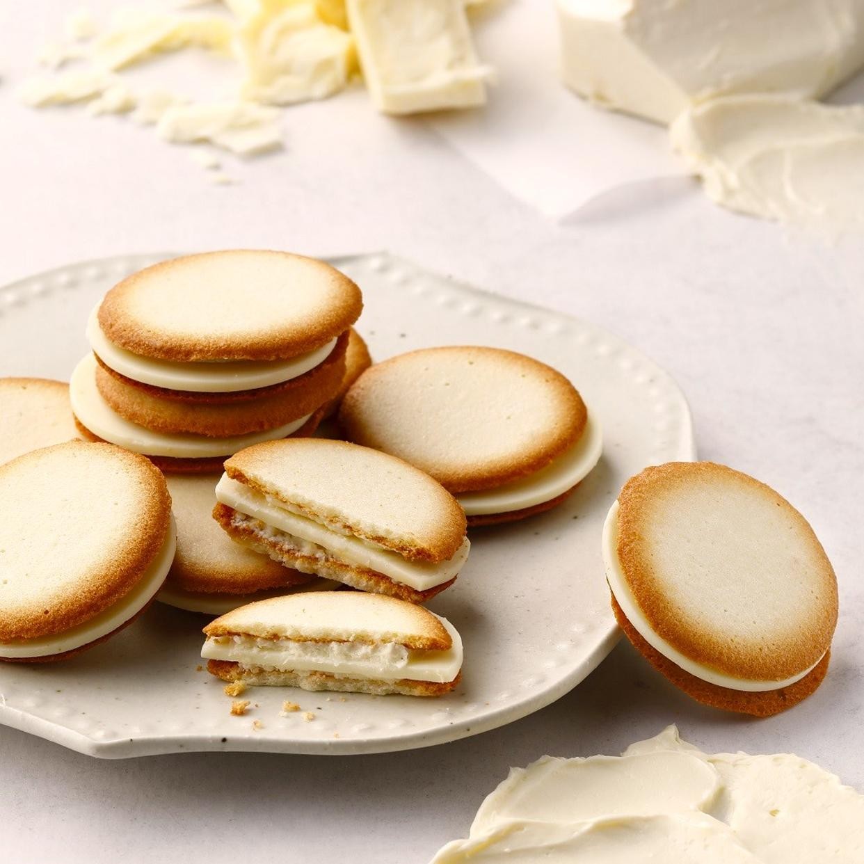 薄く焼きあげたクッキー生地の間に、ホワイトチョコレートとチーズクリームをサンドしました。ホワイトチョコの甘さとチーズクリームの塩気があとを引く、チーズガーデンの隠れた人気商品です。
