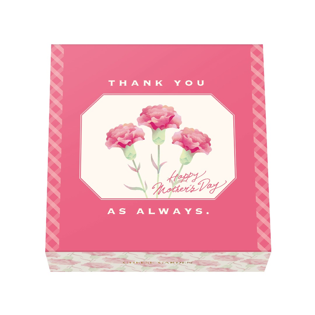 濃厚な味わい、なめらかな舌触り、しっとりとした食感で、チーズガーデンを代表する人気ナンバーワンのチーズケーキを、母の日限定デザインのスリーブ入りでお届けいたします。
