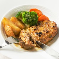 果実味のあるデミグラスソースを絡ませた、野菜たっぷりの軽やかなハンバーグ。