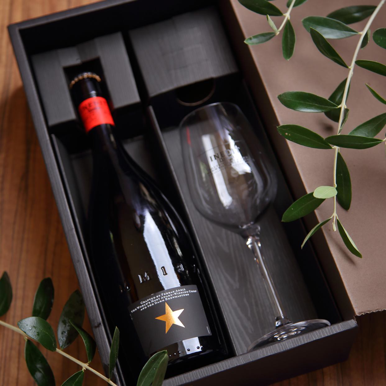 究極のビール「イネディット」とイネディットのロゴ入り専用グラス一脚の豪華セットです。
