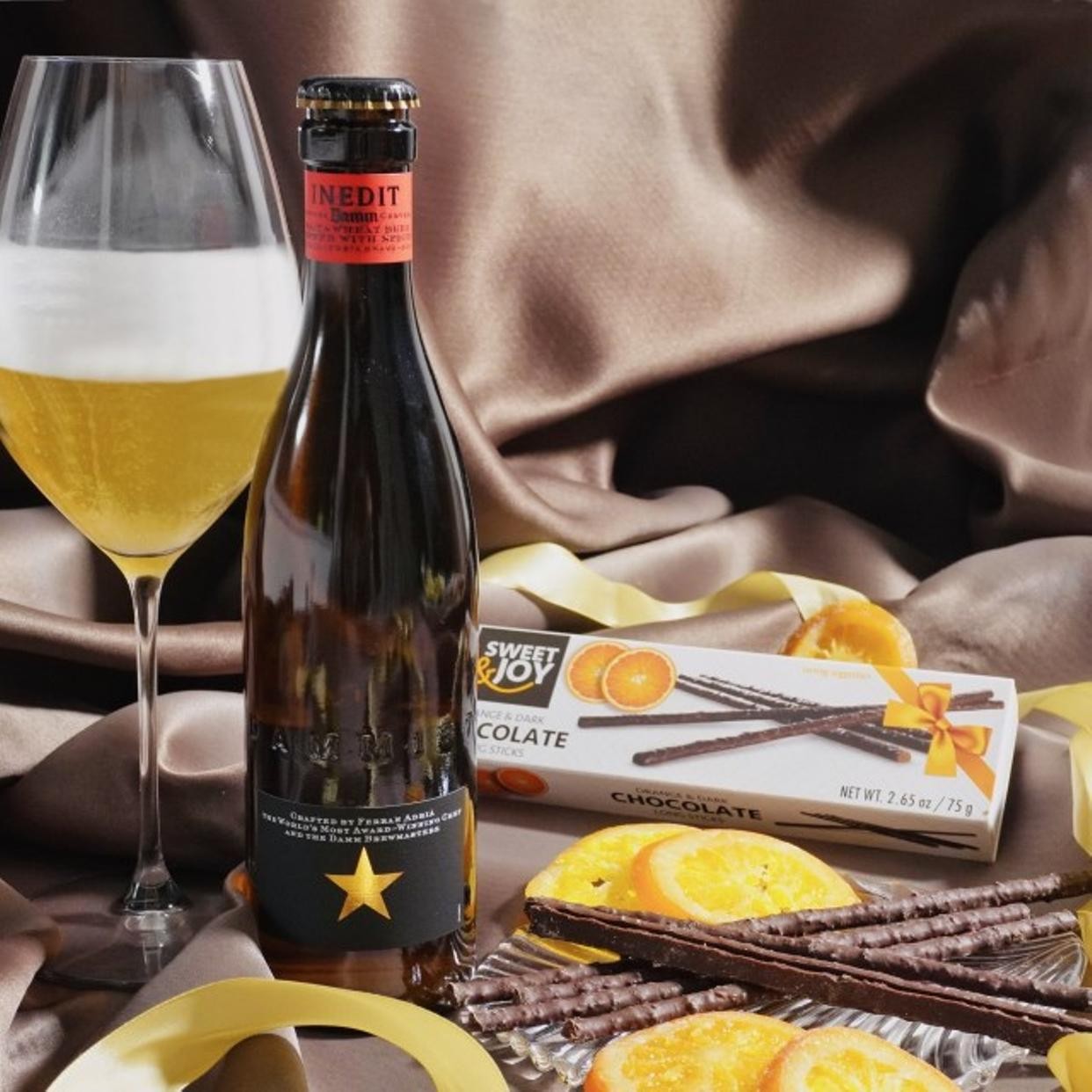 ホワイトビールとオレンジチョコのマリアージュをお楽しみいただけます。
