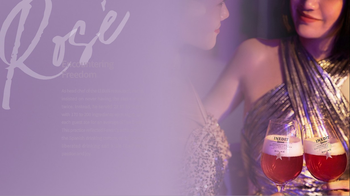 “セレブを迎えるためのビール”がコンセプト。忘れることのできない鮮烈な味わいの高級ロゼビール。世界最高のレストランに5回も輝き、世界で最も予約のとれないと言われた三ツ星レストラン、エルブジの天才シェフフェラン・アドリアと、そのエルブジ総ソムリエでもあるスペインNo, 1ソムリエ、フェラン・センテジェスが率いるソムリエチームとDAMM社のブラウマイスターが造りだした前例のない究極のコラボビール第2弾のプレミアムビールです。