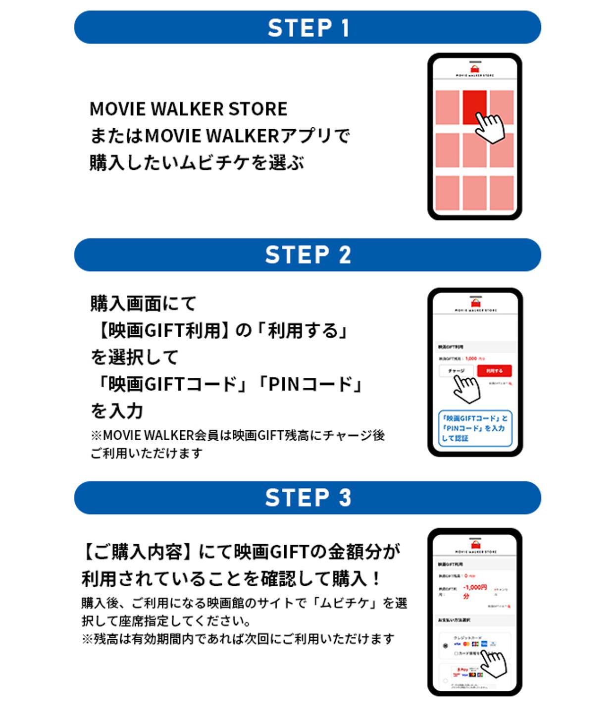 ※未使用残金分は、改めて映画GIFTをお買い求めいただくか、クレジットカード支払等を合わせる方法でご利用いただけます。