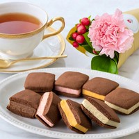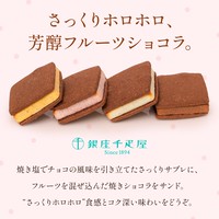 チョコレートの風味を引き出すため、焼き塩を使用したさっくり食感のサブレ生地に、クレープ生地やフリーズドライのフルーツを混ぜて焼き上げたチョコサンド。「さっくりホロホロ」の食感とコクのあるフルーツショコラをお楽しみください。