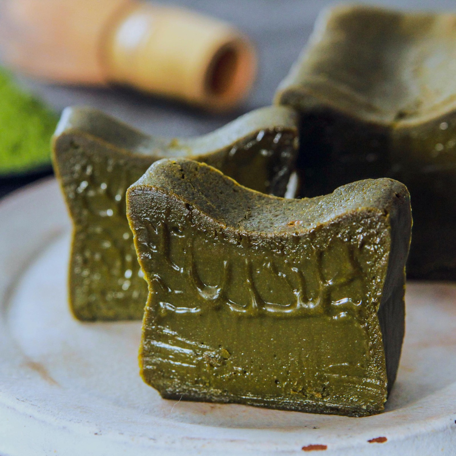 ホワイトチョコレートをベースに2種の高カカオチョコレートを配合し、京都宇治抹茶と合わせました。