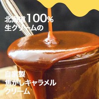 チョコレートを引き立てる配合で北海道生クリーム使用の自家製焦がしキャラメルクリームを入れています。