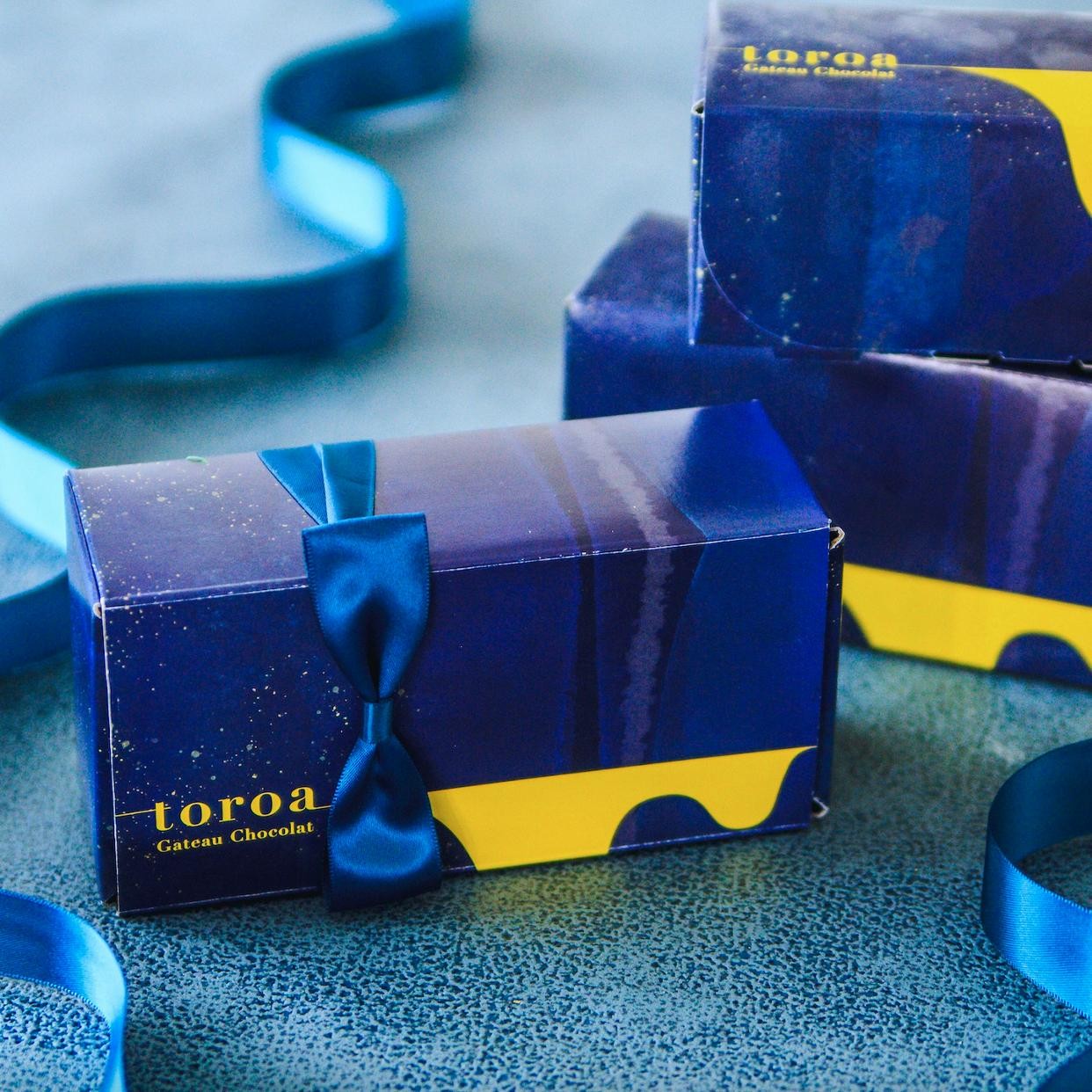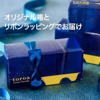 黄色とミッドナイトブルーのtoroaオリジナルの箱にお入れし、リボンをおつけしてお届けします。