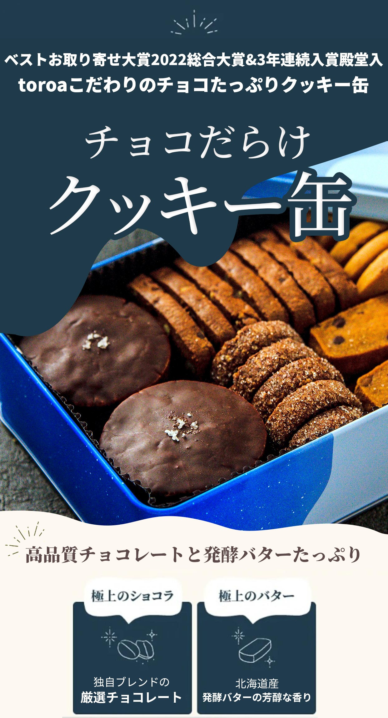 北海道産発酵バターと高品質チョコレートをふんだんに使用した生地は大変リッチな味わい。1つ2つと止まらなくなる禁断のクッキーです。
