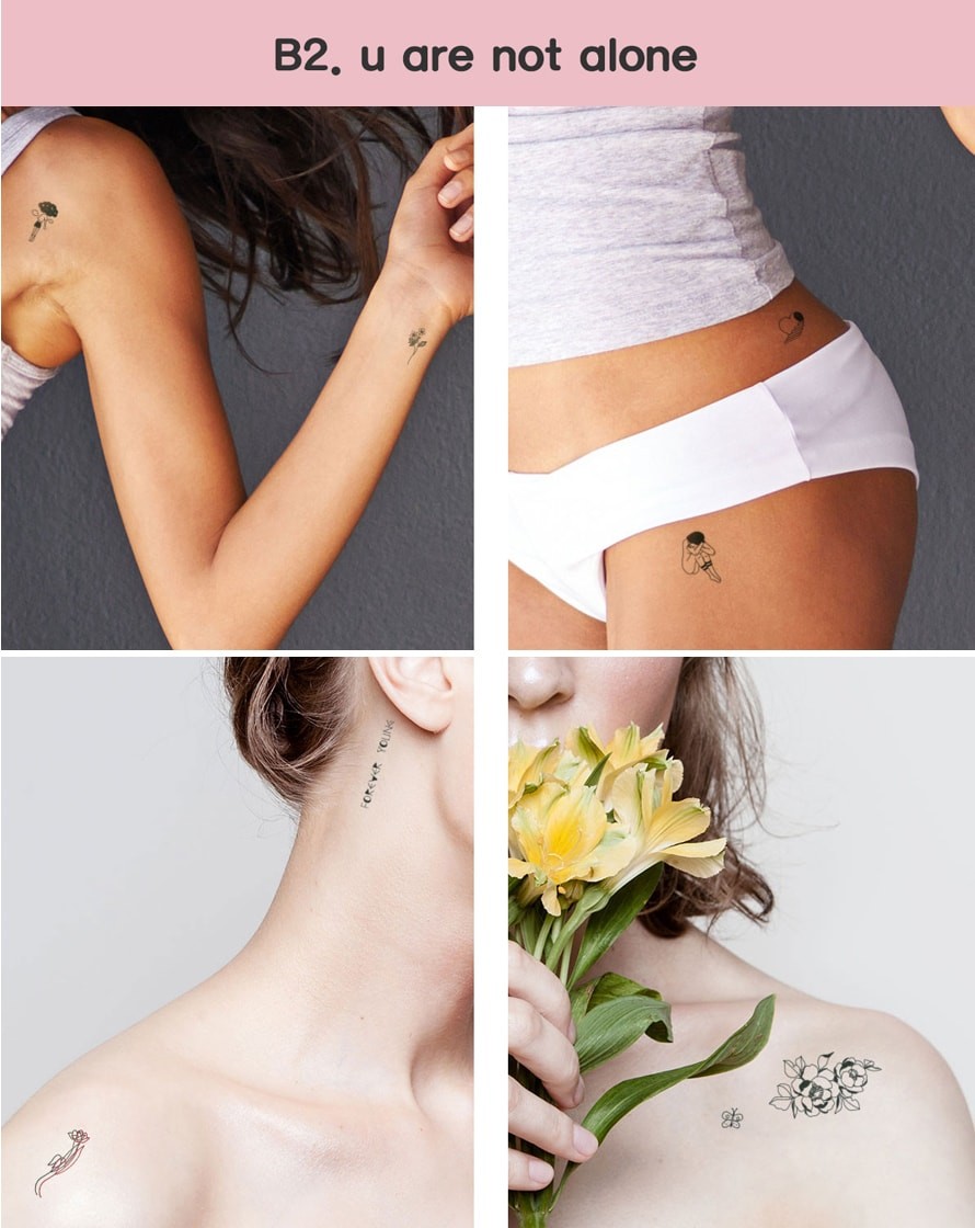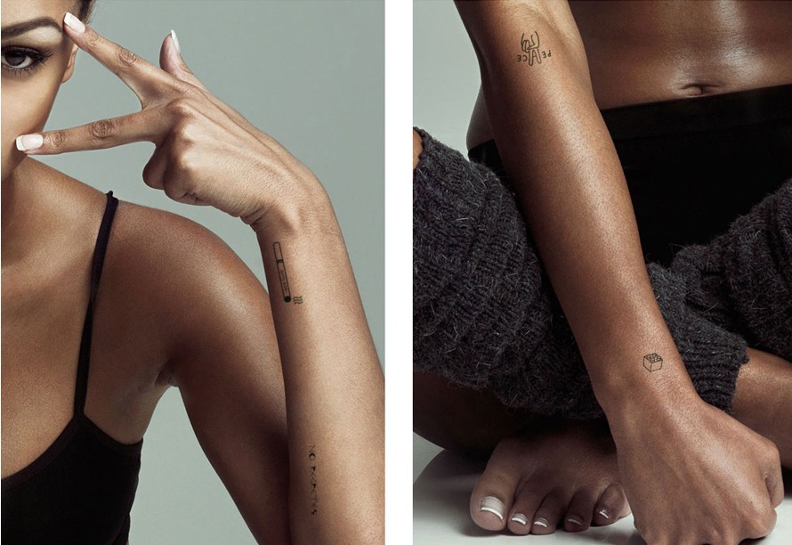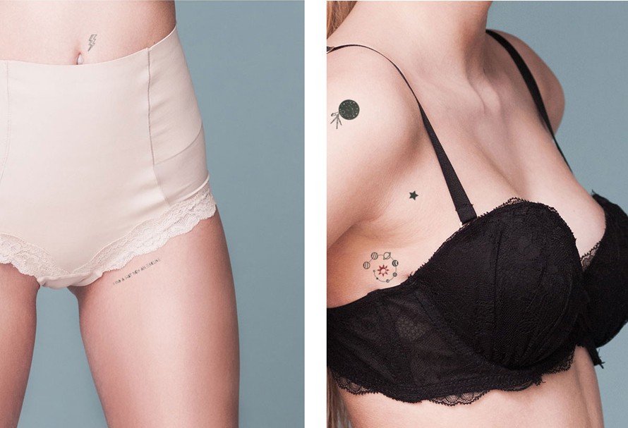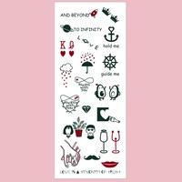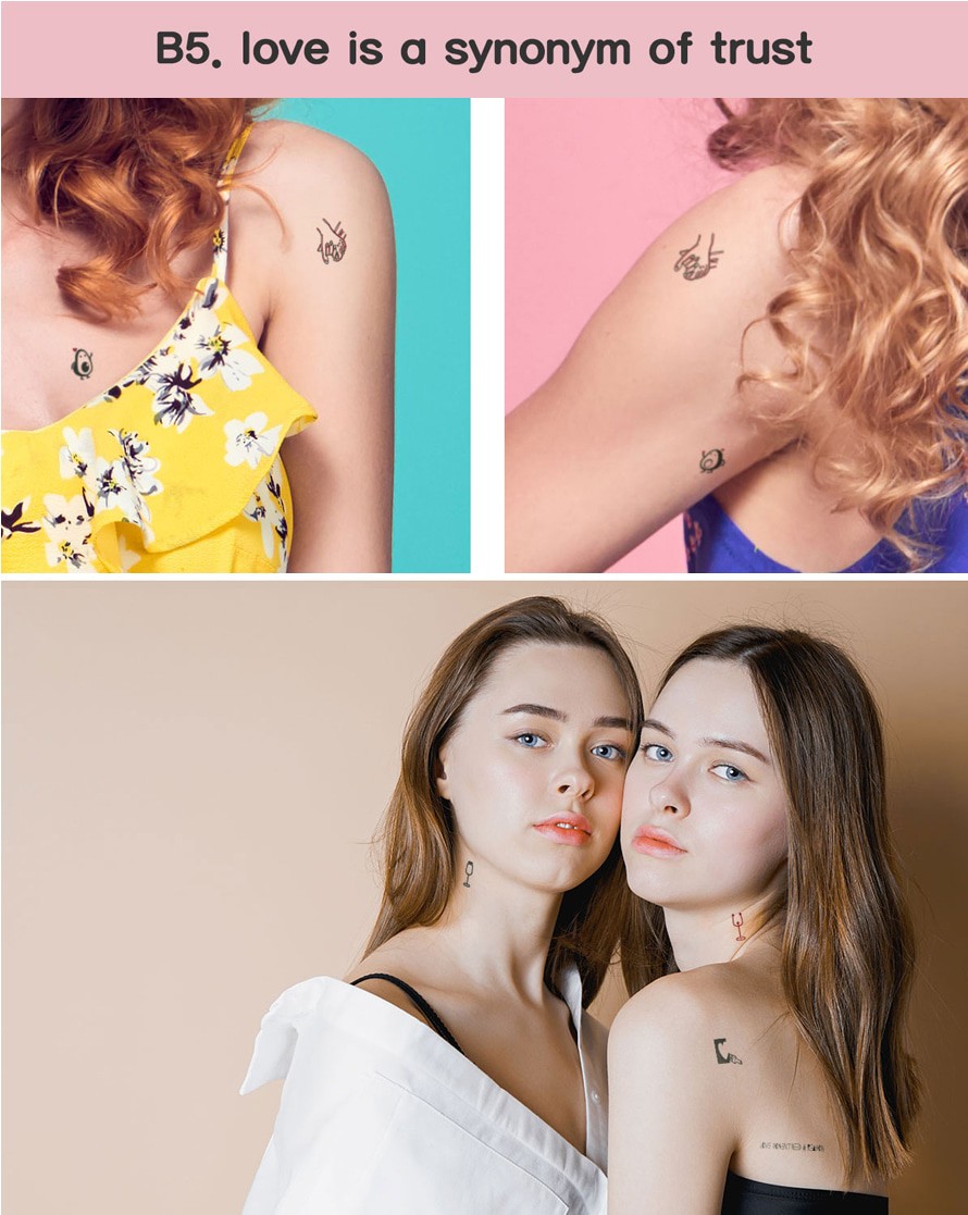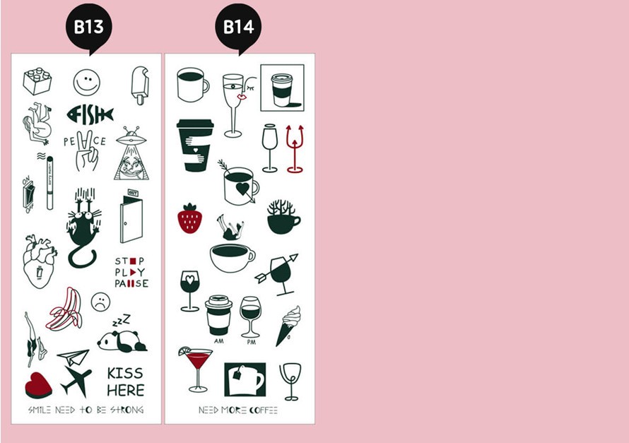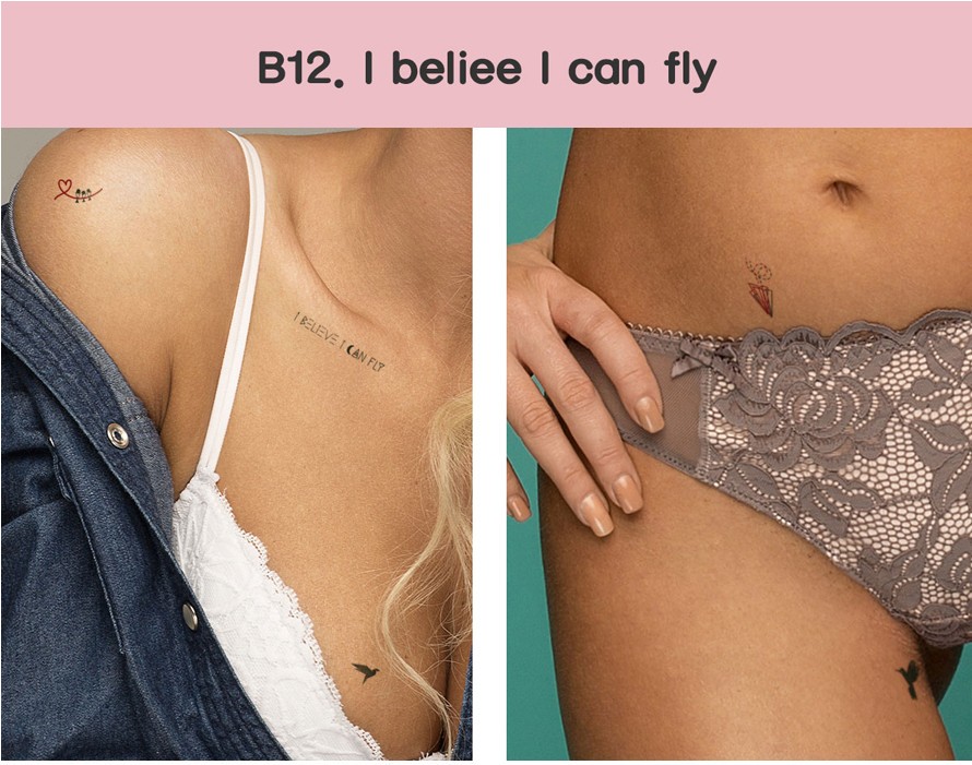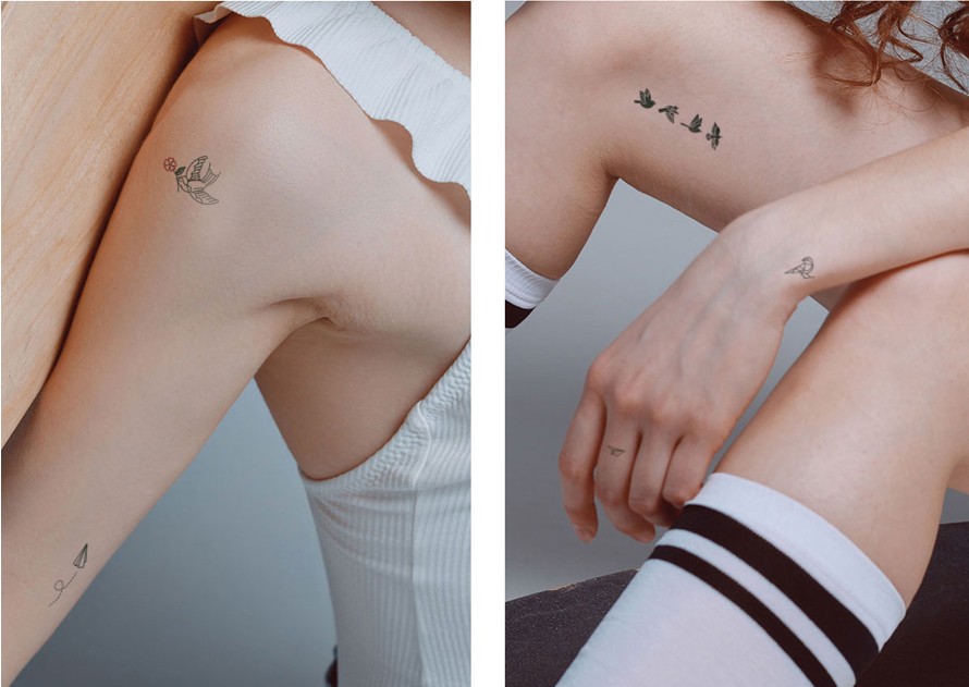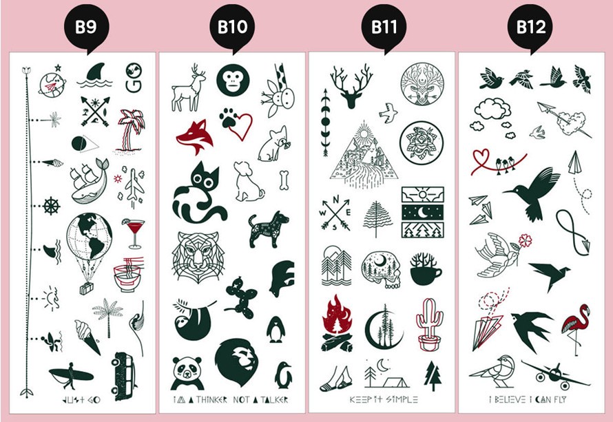 水なしで約10秒間、手でなじませるようにおさえて簡単につけれるタトゥーシールです。