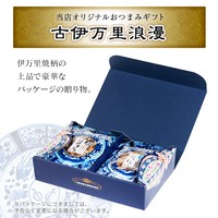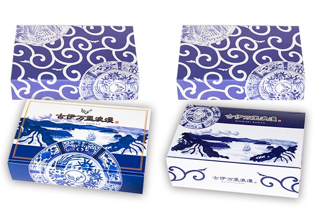 伊万里焼のお皿をモチーフにした、ブランド「古伊万里浪漫」の化粧箱。