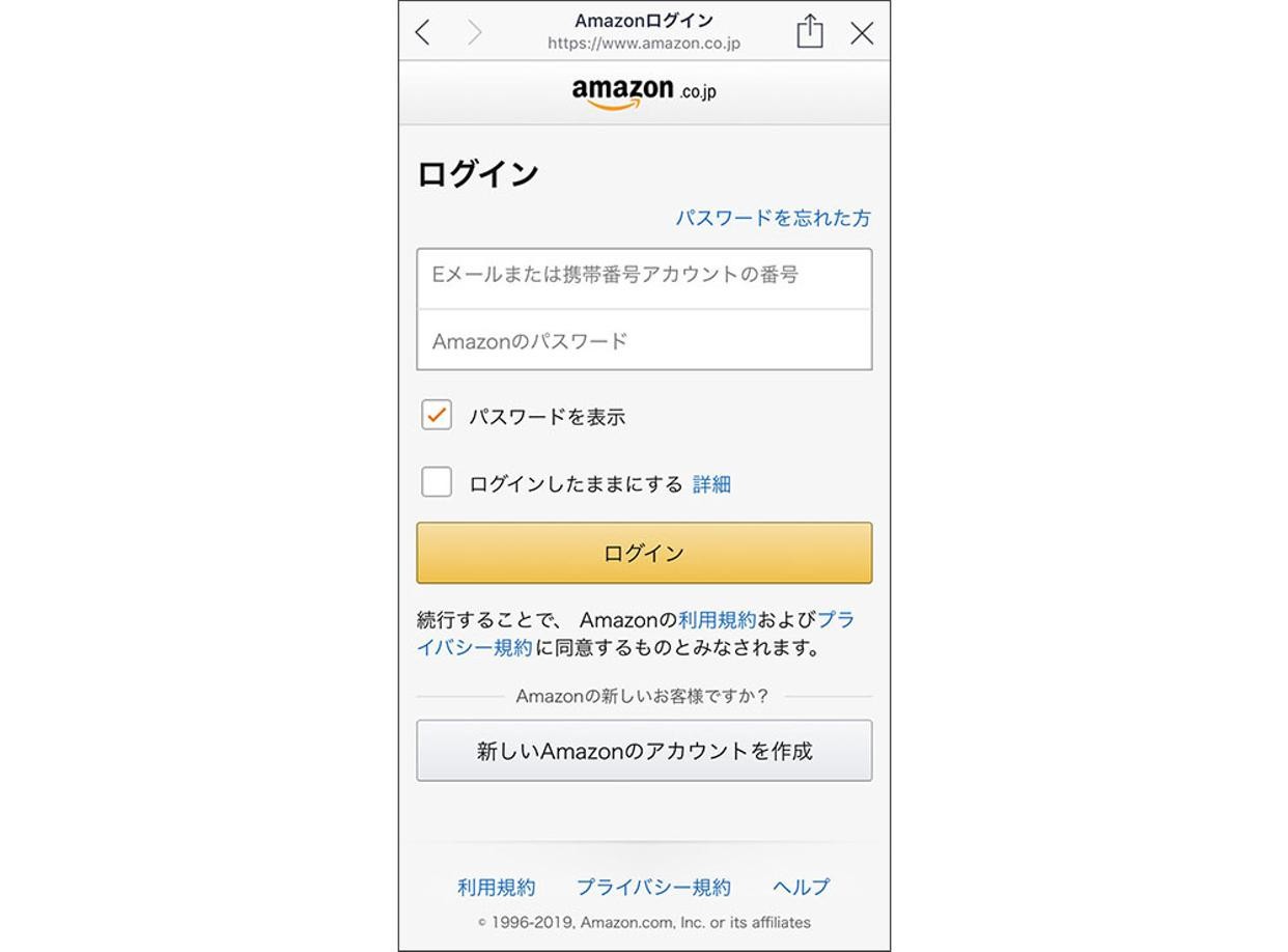 2.Amazon側のページが表示されたら、受け取る方のアカウントでログインします。