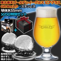 東北楽天ゴールデンイーグルスビアグラスGift Box入り+ステンレス球体氷55mm(2個入り)父の日特別セット