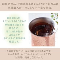 銅は鉄の5倍、ステンレスの25倍もの熱伝導の良さを誇るため、冷たいお飲み物には口当たりや手に伝わる清涼感は格別です。