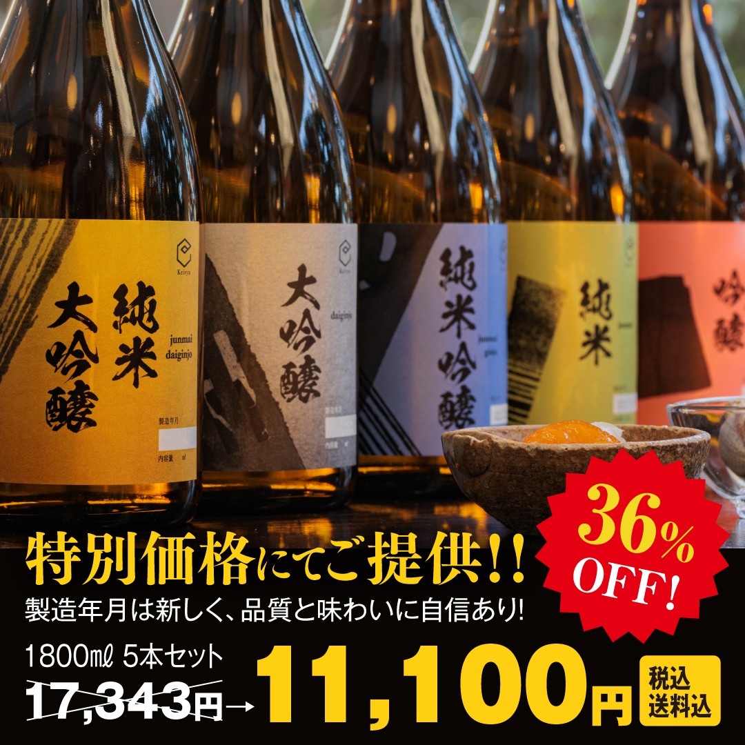 大吟醸、純米大吟醸、純米吟醸、純米、吟醸がセットになったとてもお得なセットです!!通常価格よりお安く販売いたします!数に限りがございますので、ご注文はお早めにお願いいたします。【セット内容/1800ml 5本】●大吟醸●純米大吟醸●純米吟醸●純米酒●吟醸酒