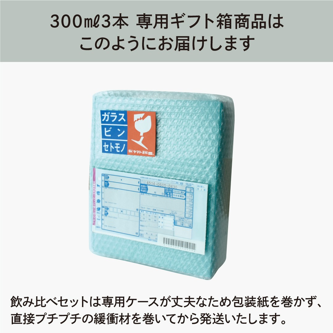 ※飲み比べセットは専用ケースが丈夫なため、包装紙を巻かず直接プチプチの緩衝材を巻いてから発送いたします。