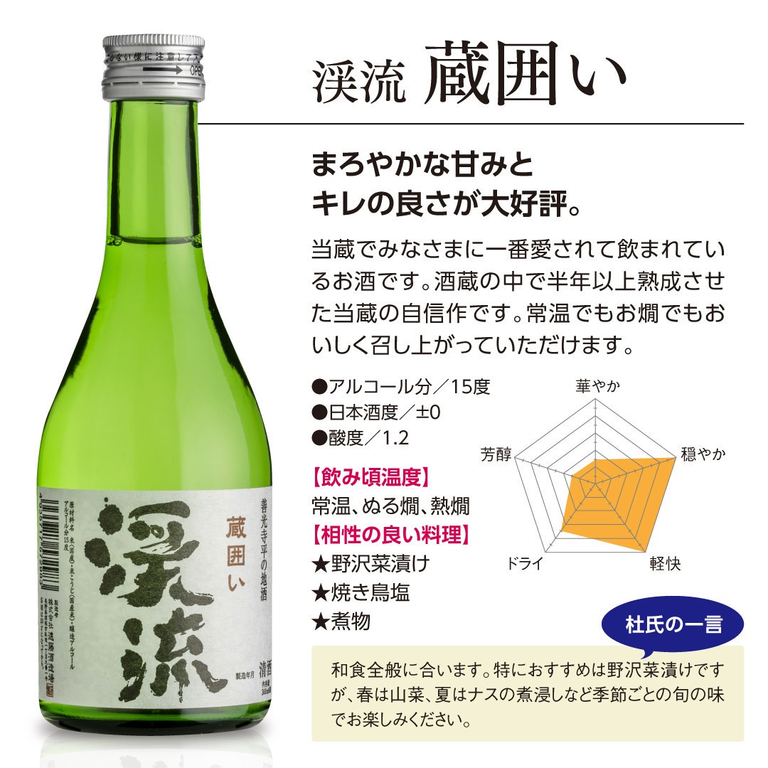 モンドセレクション金賞受賞!! 渓流 蔵囲いは、当蔵でみなさまに一番愛されて飲まれているお酒です。