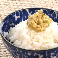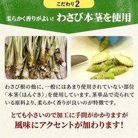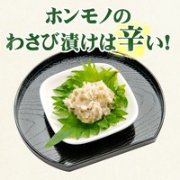 【わさび漬け・甘辛口】わさびの風味はしっかりと残しつつ、辛さを抑えめにしたわさび漬けです。わさび漬けは食べたいけれど、辛いのは苦手という方におすすめです。