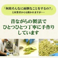 【わさび漬け・大辛口】わさび根をもっとも多く配合したため、一番辛い味付けとなっています。熟成がうまくいかなかったときは販売をを取りやめるほど拘ったわさび漬けです。そのままでお召し上がりいただき、わさび漬けの美味しさをお楽しみください。