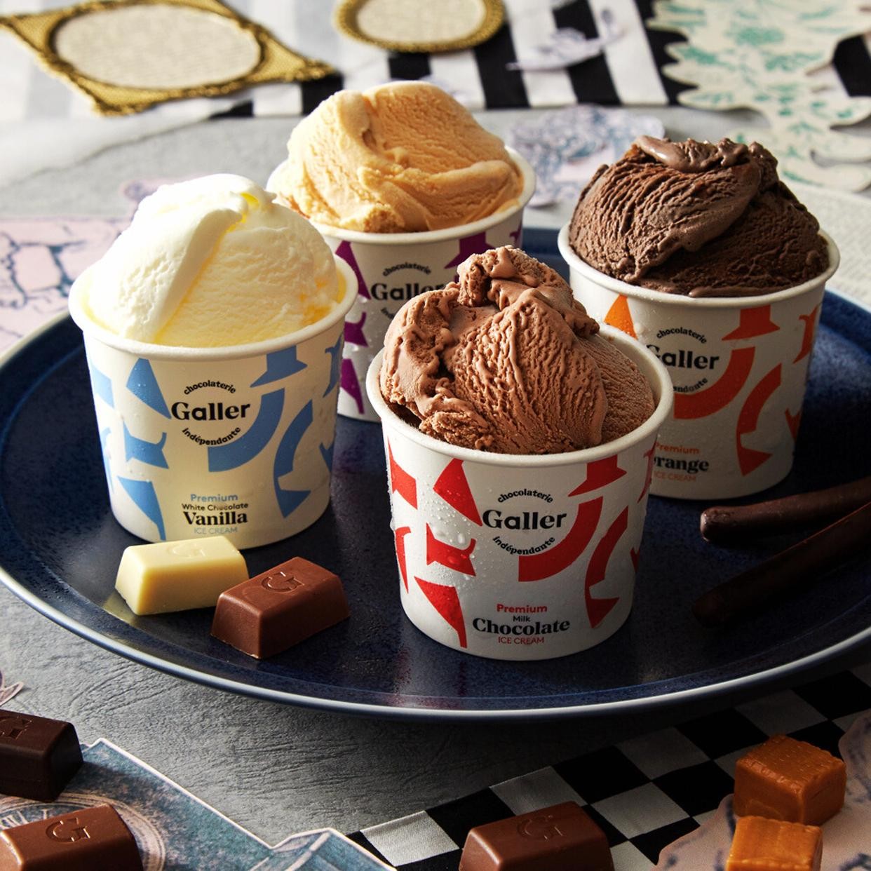 ベルギー王室ご用達、ジャン・ガレー監修のチョコレートアイスクリーム。4種類のチョコレートアイスの織り成す、絶妙な味わいの違いを是非ご堪能下さい。