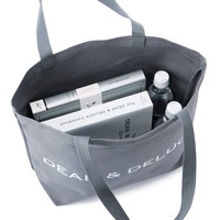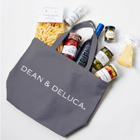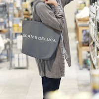 コットン製のDEAN&DELUCAオリジナルトートバッグ。肩からかけられ、A4サイズのノートなども入れられるサイズです。折りたたんでもかさばらないのも魅力のひとつです。シンプルで長くお使いいただけるトートバッグです。