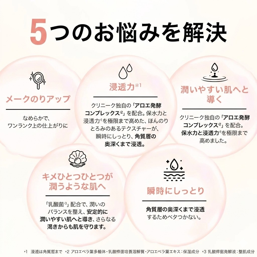 STEP1:アロエの保水力に着目した乳酸菌*1配合のピンクの「保湿化粧水」(約2日分)で、水分補給。