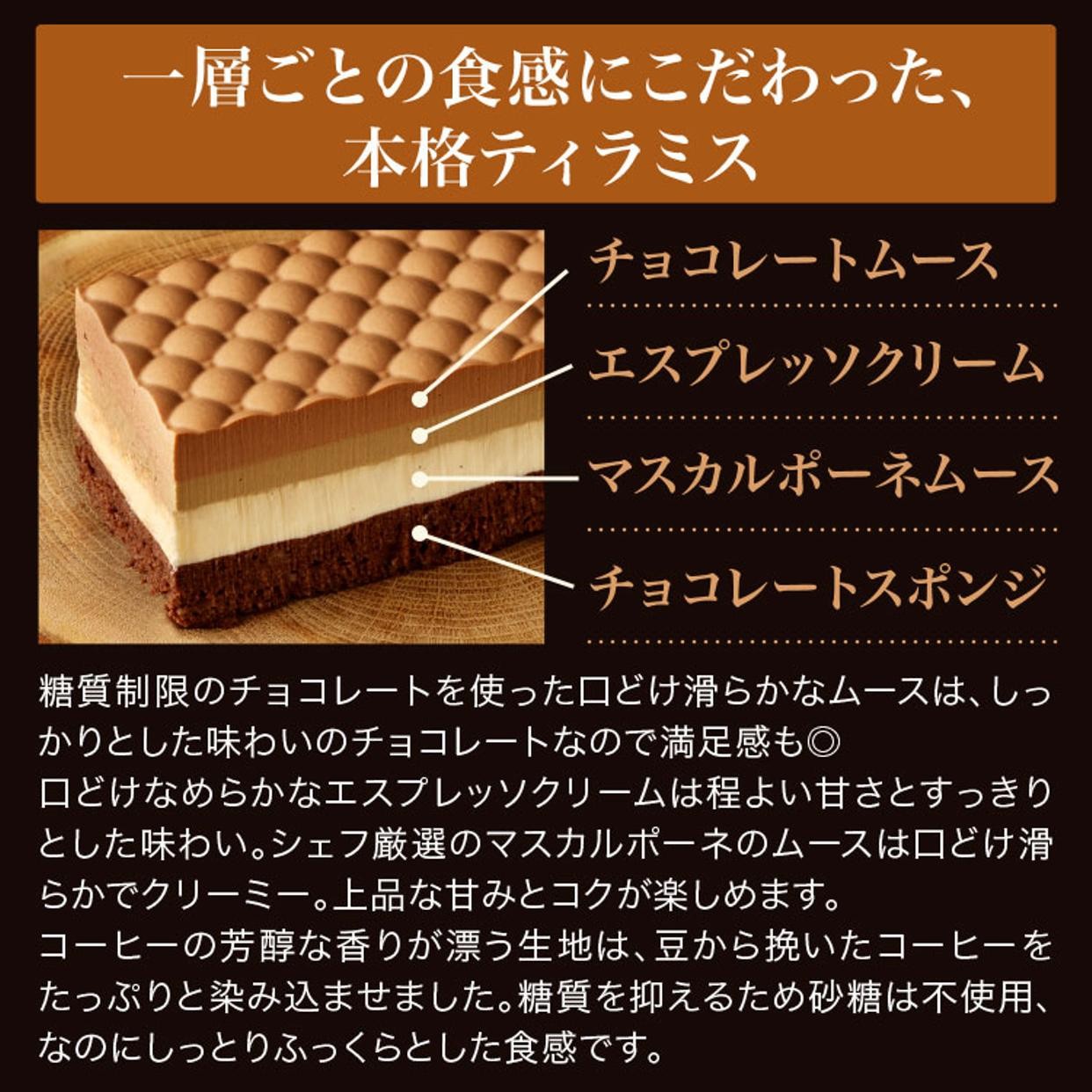 生クリーム(国内製造)、牛乳、卵白(卵を含む)、卵黄、コーヒー、ナチュラルチーズ、エリスリトール、アーモンドパウダー、乳等を主要原料とする食品、チョコレート、カカオマス、ココアパウダー、ゼラチン、粉末状小麦タンパク、バニラビーンズ/香料、乳化剤(大豆由来)、甘味料(スクラロース)