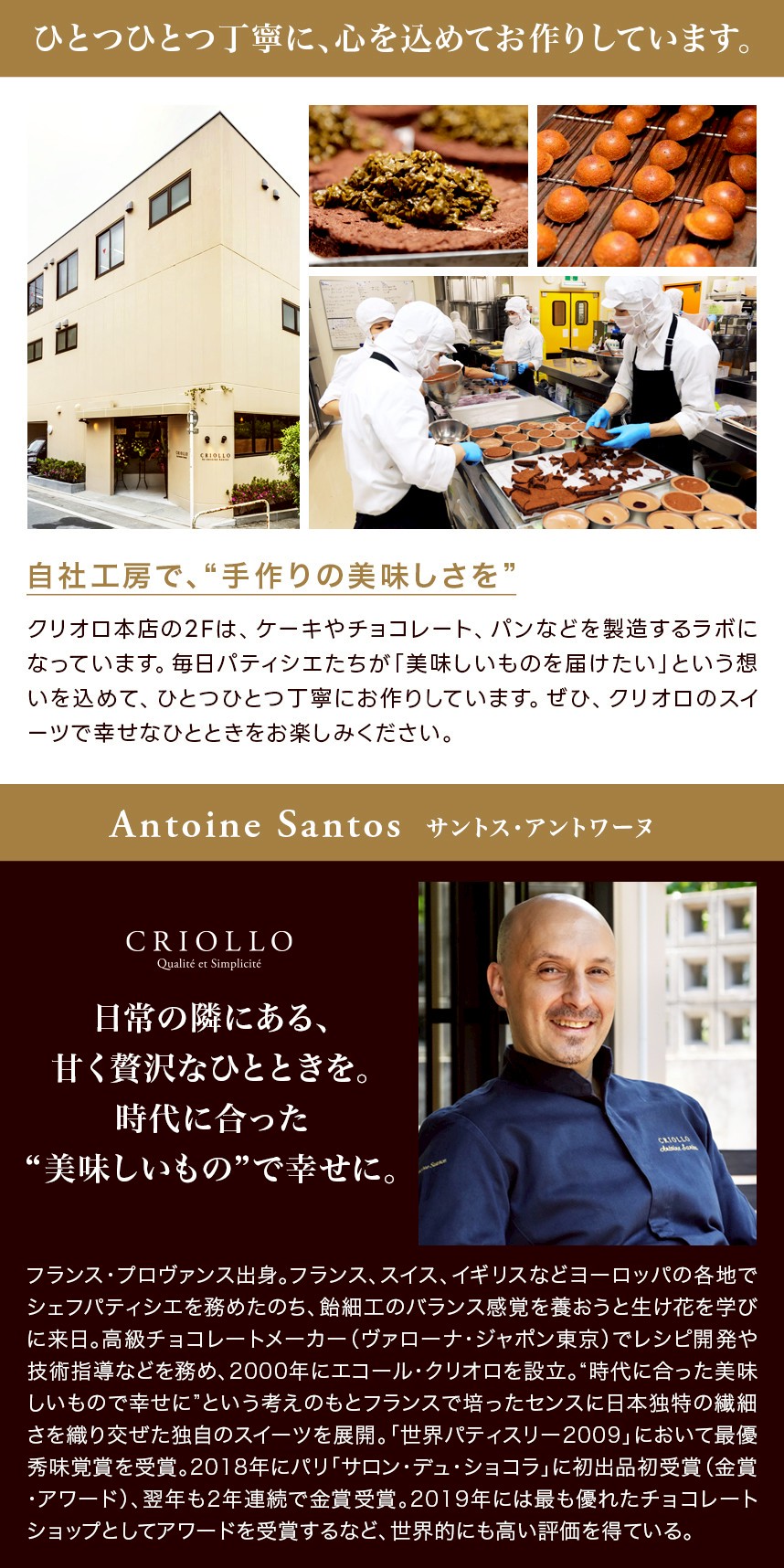 クリオロの糖質制限スイーツが誕生したきっかけは、1998年にシェフの妻であるAiさんがバイク事故にあった際、一型糖尿病であることが発覚。