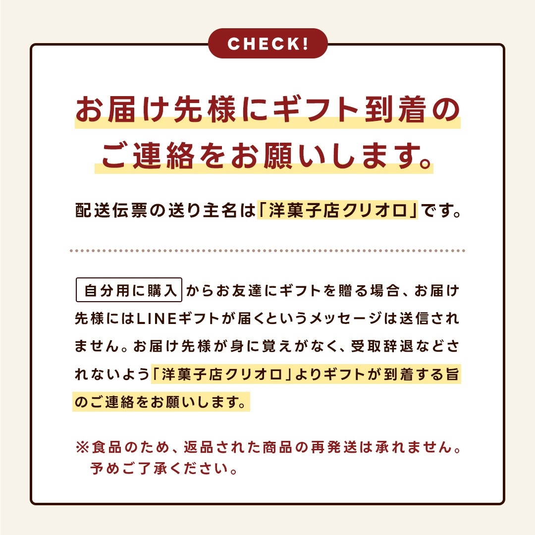諸事情により、商品の内容・素材・パッケージ・リボンの仕様など予告なしに変更することがございます。予めご了承ください。
