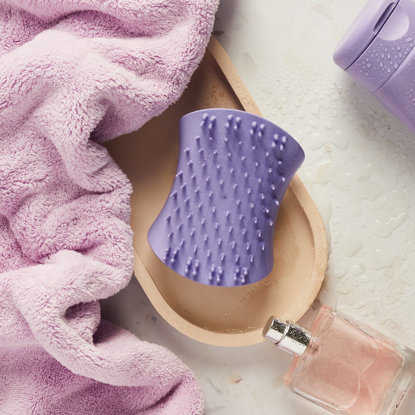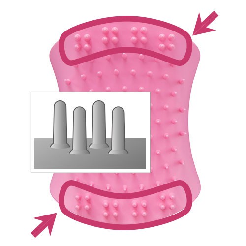 柔軟性に優れたブラシで、指先では行き届かない細かな汚れや角質を取り除き、硬めのブラシで程よい刺激を与えコリをほぐします。