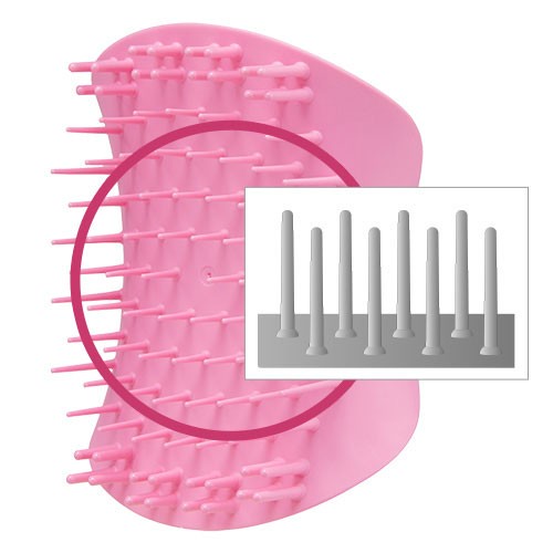 両端に配置された太く短いブラシで、ツボ押しなどピンポイントに刺激を与えることが可能。頭皮を程よく刺激し、コリをほぐします。