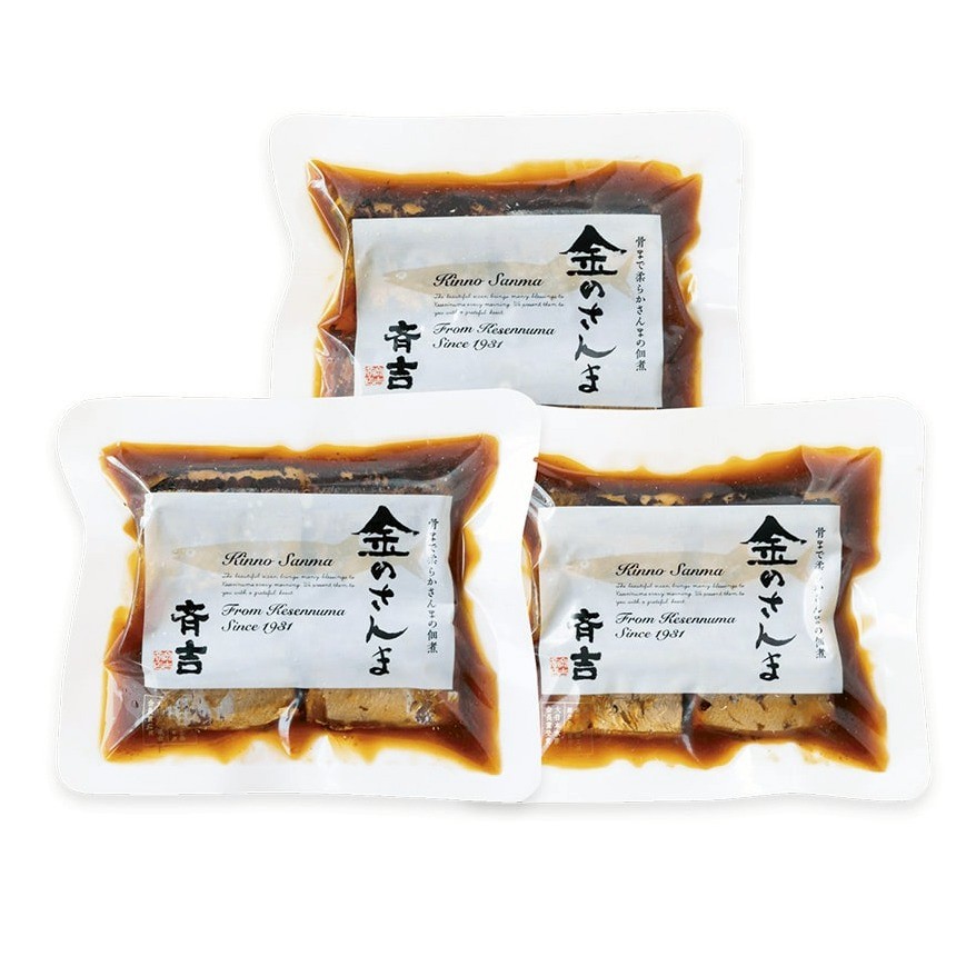さんま(国産(三陸北部沖)又は台湾産(三陸北部沖))、醤油、砂糖、還元水飴、清酒、みりん、魚醤、生姜、食塩(原材料の一部に小麦、大豆を含む)