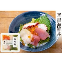 斉吉のロングセラー商品。10~15分の短時間で解凍でき、ご飯にのせるだけの本格海鮮丼です。