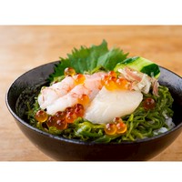 鯛、サーモン、海老、帆立、いくら、めかぶの海鮮丼。