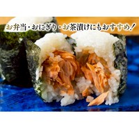 宮城県産銀鮭のみを使用。醤油、みりん、お酒の斉吉特製のゆう庵たれでじっくり漬け込み、しっとり蒸し焼きに仕上げています。粗くほぐしてあり、食感も良いです。骨も取ってありますので食べやすいです。
