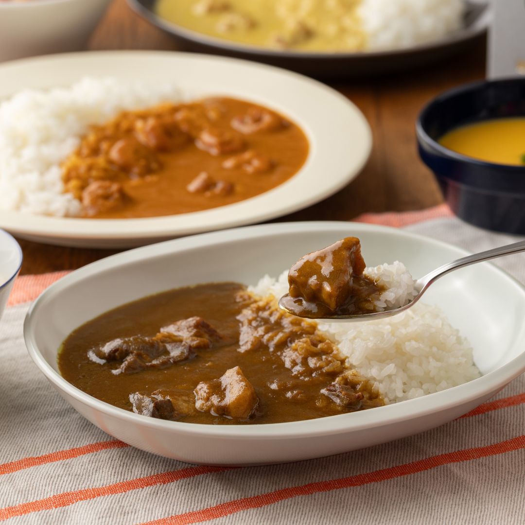 疲れた日のごはんに大活躍のカレー2種、野菜のおいしさがぎゅっと詰まったスープ2種、2~3歳ごろからお召し上がりいただけるお子さま向けのハンバーグとカレーをセレクト♪