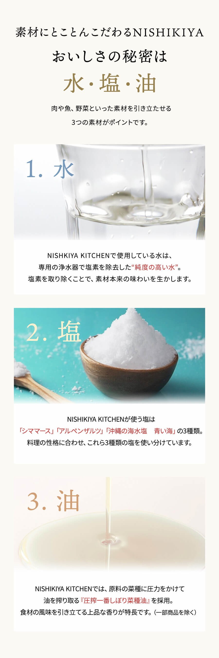 ※NISHIKIYA KITCHENの工場では、卵・乳・小麦・えび・かに・落花生を含む製品を作っています。(特定原材料対象)