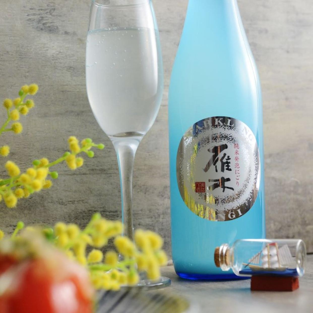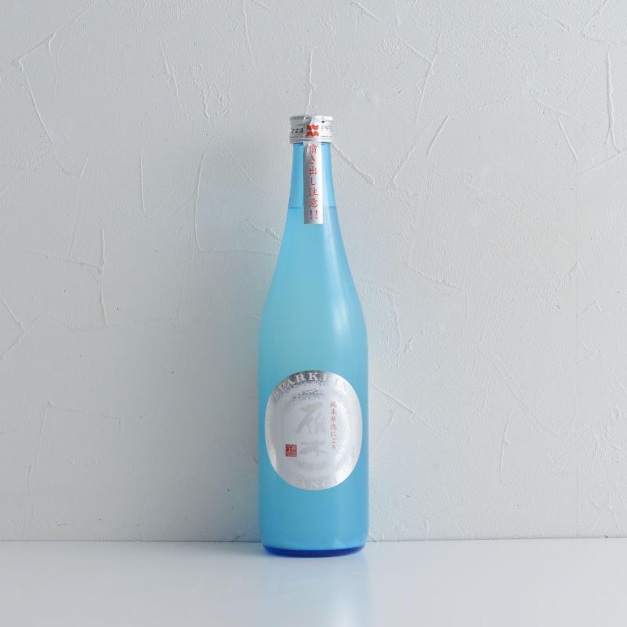 鮮やかな水色のボトルに銀のラベルが印象的な雁木のスパークリング日本酒。お米の甘みとはじけるシュワシュワ感で日本酒ビギナーでも飲みやすい味わいです。