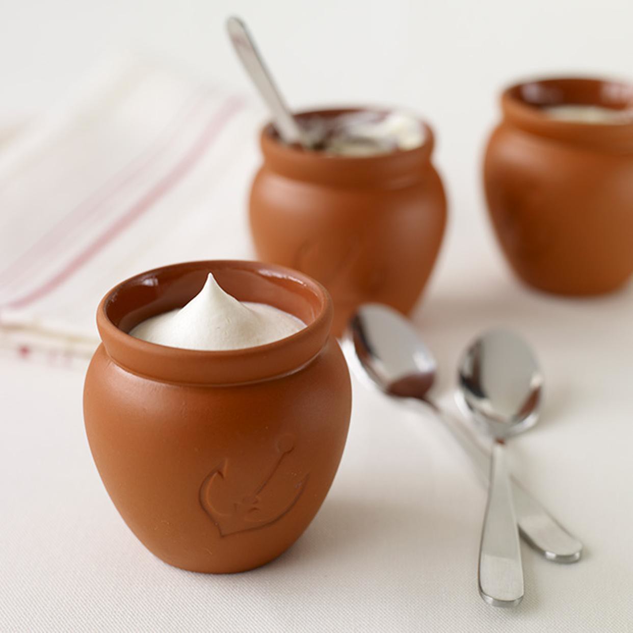 可愛い素焼きの壷に入ったとろとろプリンは、まさにすくって食べるような魔法の食感!クリーム、カスタード、そしてカラメルソースが口の中で絡まり、食べすすめるうちに、次々に美味しさが追いかける、まったく新しいプリンです。