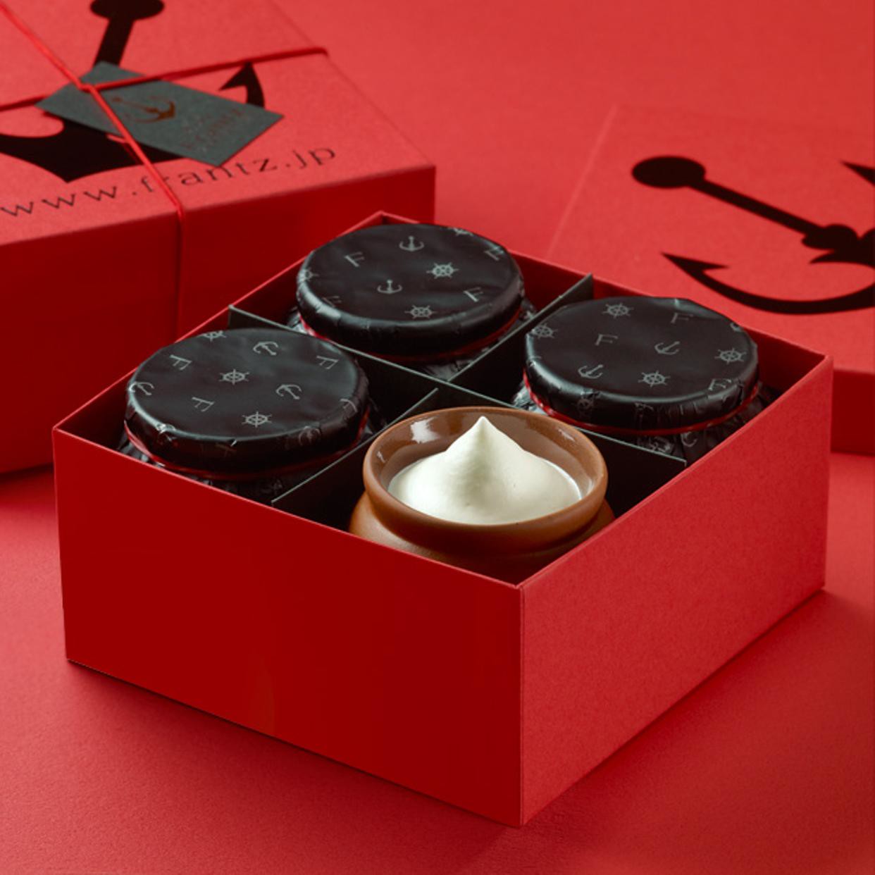 更に、4つのプリンをフランツオリジナルBOXに詰め合わせてお届けします。